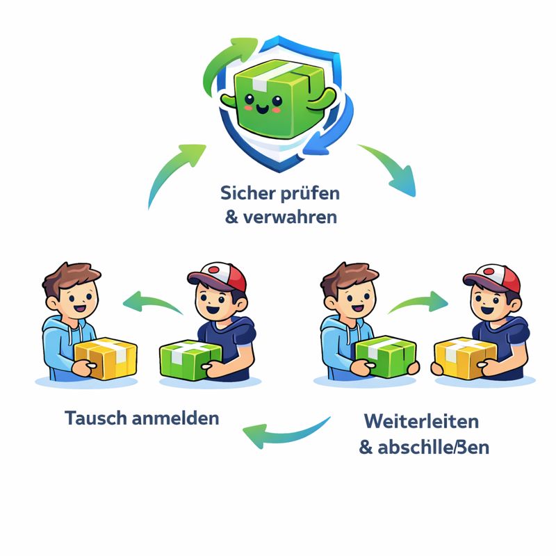 SwapGuard erleichtert den sicheren Tausch zwischen Privatpersonen, indem wir Pakete entgegennehmen, prüfen und erst weiterleiten, wenn alle Sendungen eingegangen sind – für mehr Sicherheit und Transparenz bei jedem Tausch.